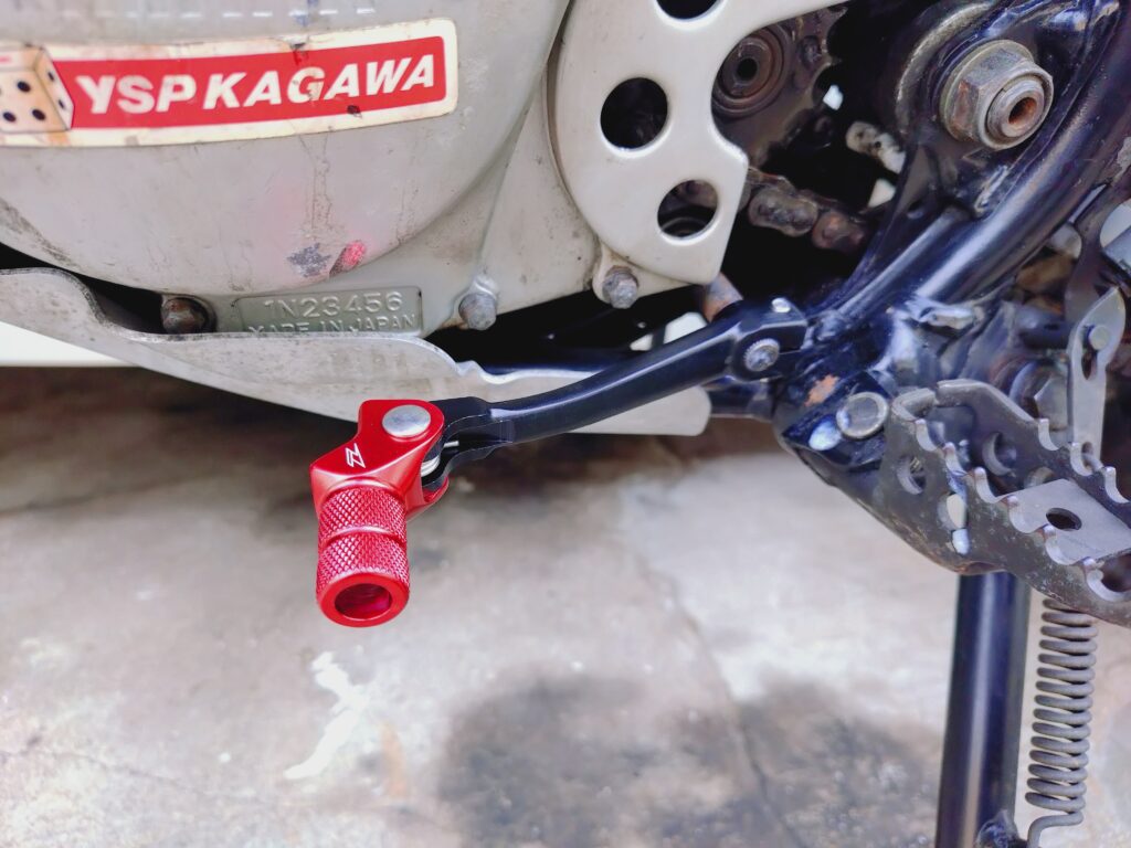 汚古いバイクに新品レバー。違和感しかない。古いレバーはそのうちコケて折れた時のスペアに