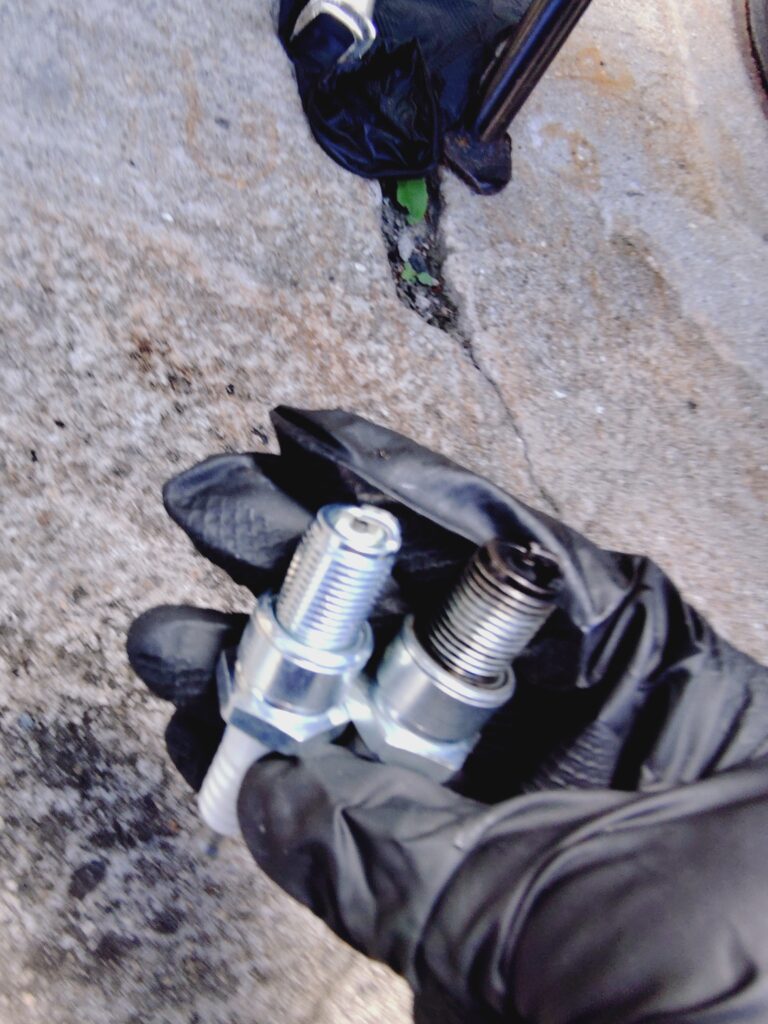 真っ黒やけど減ってないような…。プラグほど新品との差がある部品はないねぇ。